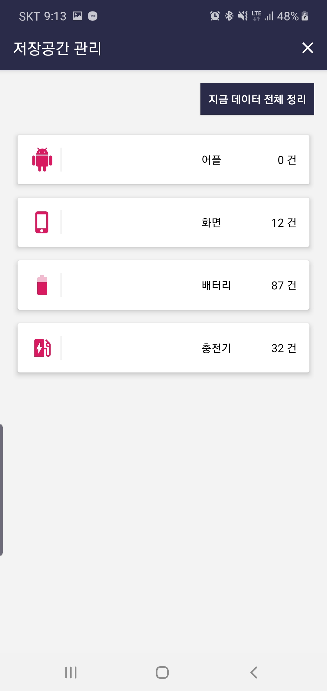 2. 설정 > 저장공간 관리 > 지금 데이터 전체 정리 기능 추가